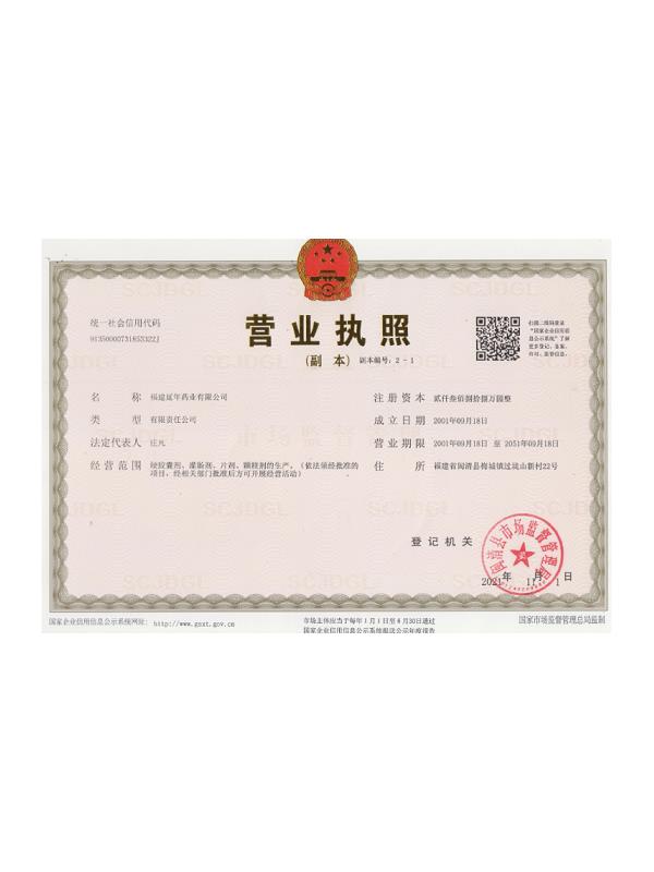 福建延年藥業(yè)有限公司位于福州市閩清縣城關(guān),工廠坐落在風景秀美的梅城森林公園山腳下,公司前身是中國人民解放軍第9747工廠,創(chuàng)辦于1970年9月,隸屬南京軍區(qū)總后勤部,企業(yè)的地方名稱為福建閩清制藥廠。1998年6月為貫徹中央關(guān)于軍隊不再從事經(jīng)商活動的決議,企業(yè)軍轉(zhuǎn)地改制移交地方,2001年9月企業(yè)改制,更名為福建延年藥業(yè)有限公司。